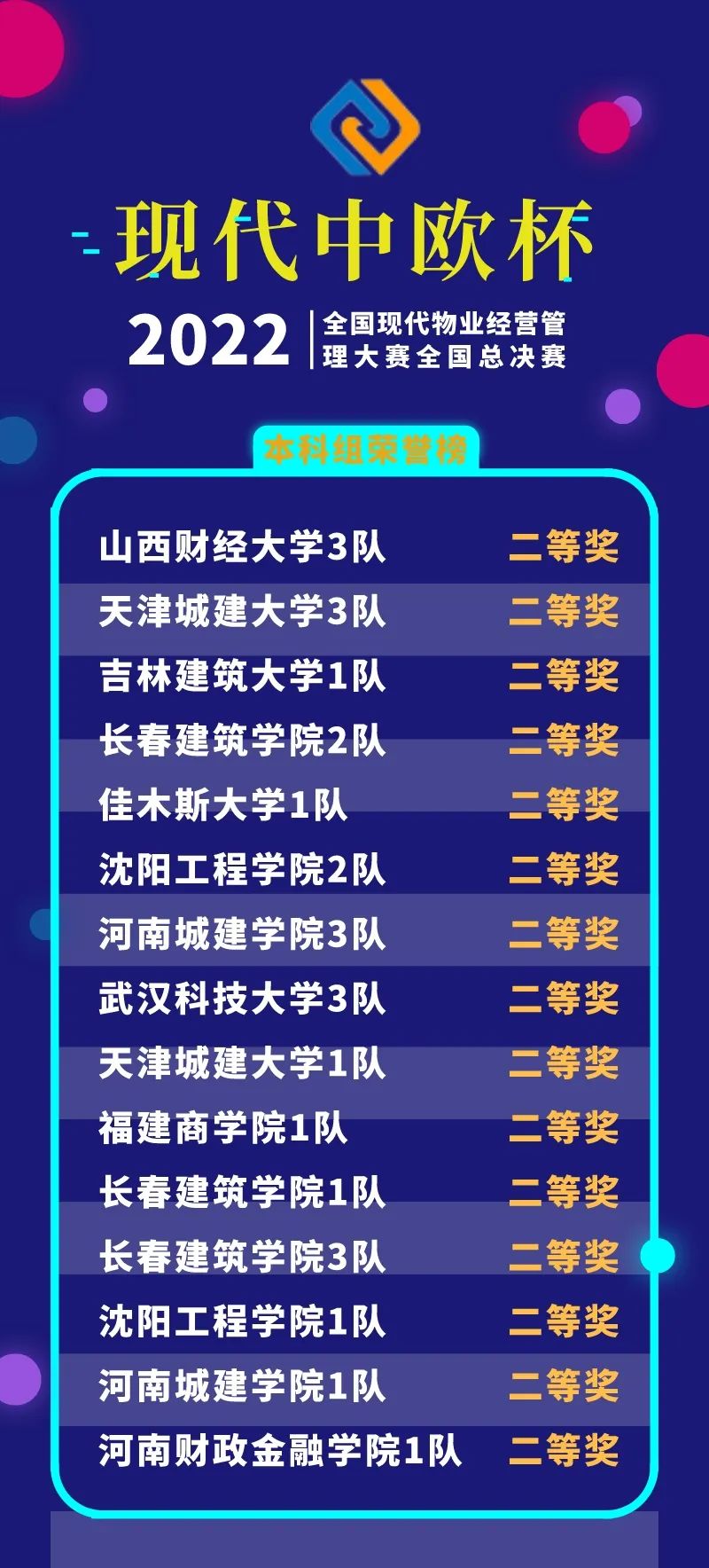 經(jīng)過線上競賽的激烈比拼,2022年“現(xiàn)代中歐杯”全國現(xiàn)代物業(yè)經(jīng)營管理大賽全國總決賽獲獎(jiǎng)名單揭曉。